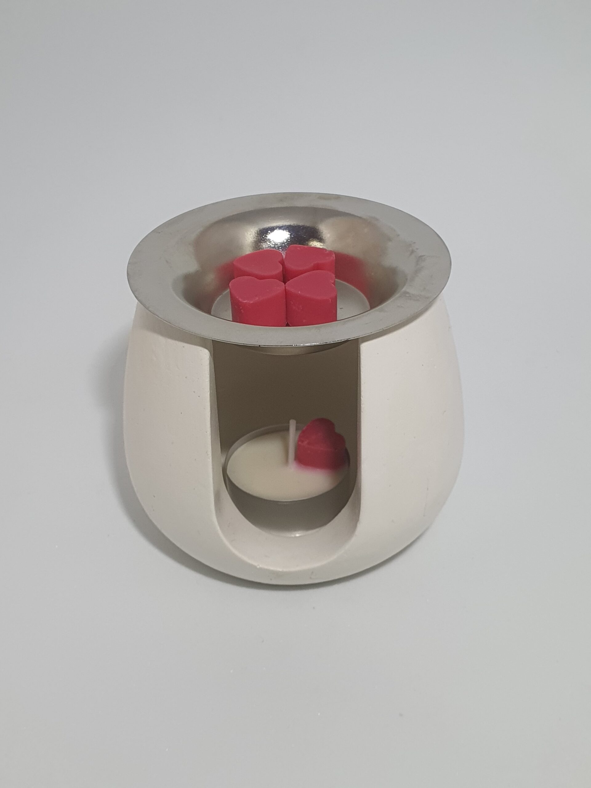 Quemador realizado de forma artesanal en cemento blanco. Coloca en la parte superior metálica tu esencia o tus wax melts favoritos, enciende un vela de té colócala en su interior y disfruta el aroma en todas tus estancias. Regalamos con la compra del quemador una vela de té (cera de soja) y unos wax melts para que pruebes nuestras fragancias.
